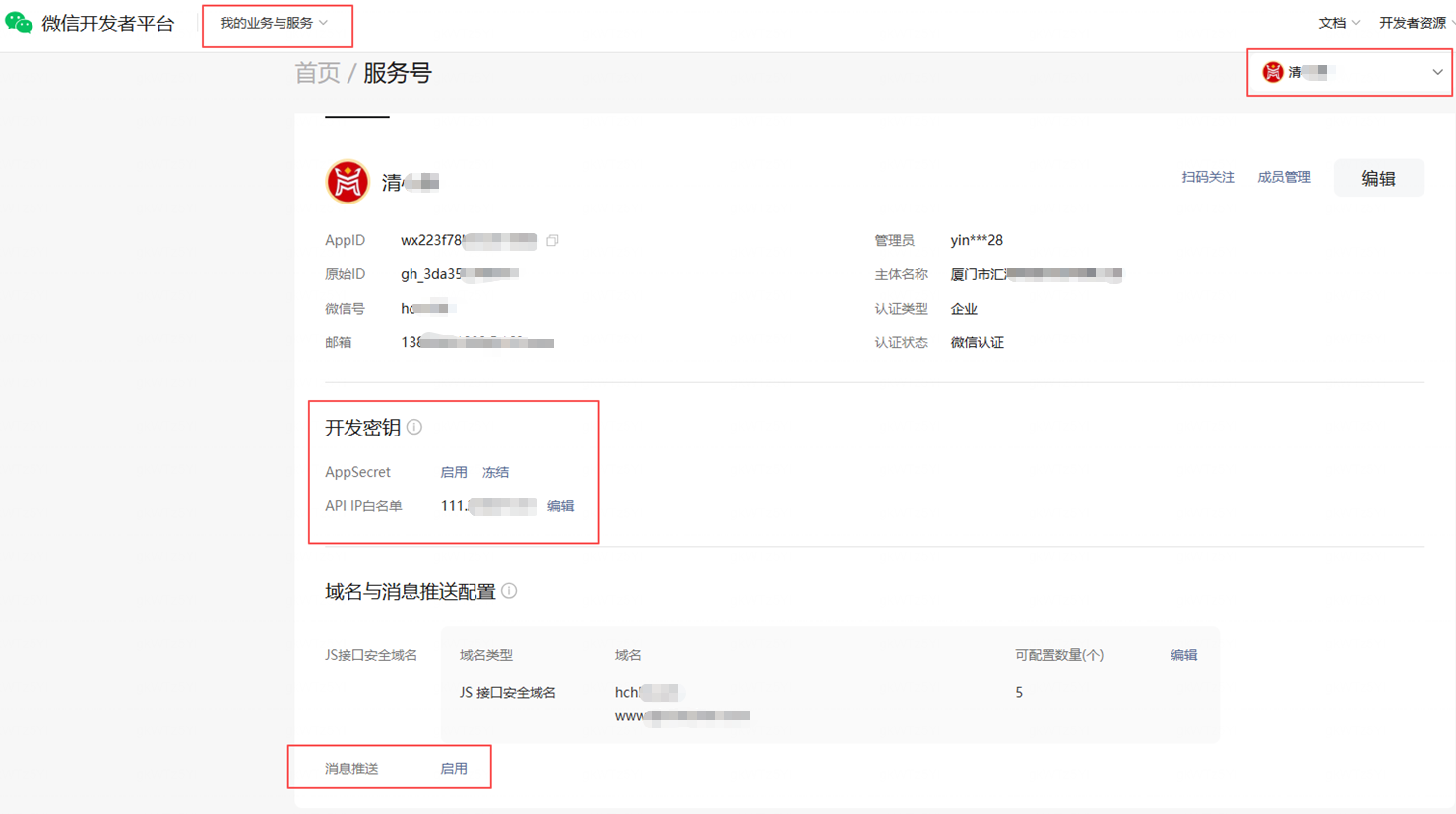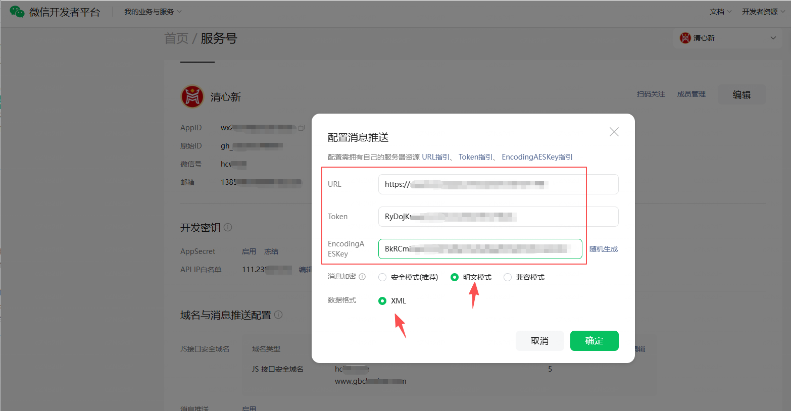 (4)点击“消息推送”的启用,从系统后台获取配置链接