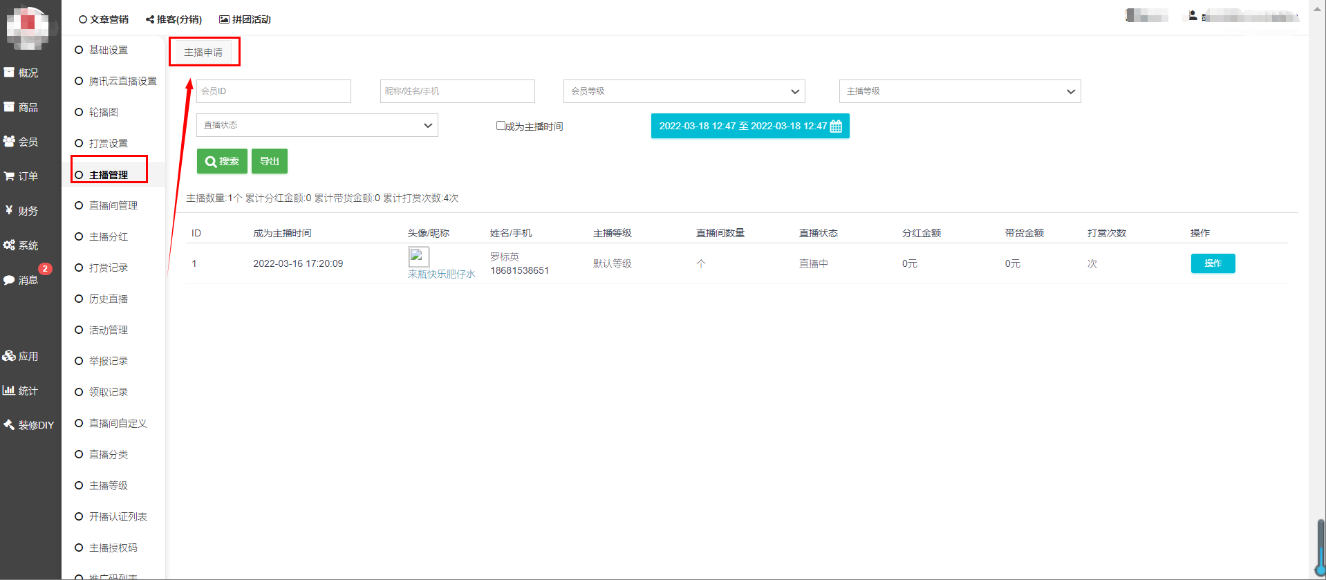 1、需要在商城小程序/公众号商城/app商城个人中心申请主播身份